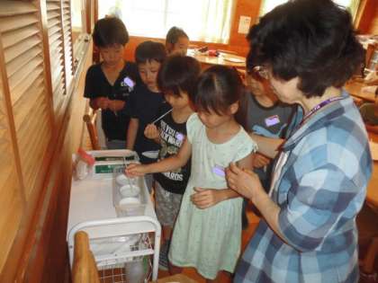 どのようにして美味しい味を見つけるかを考えて,たくさん発表しました。味の違いが分かるかどうか,塩分濃度計を使って体験しました。