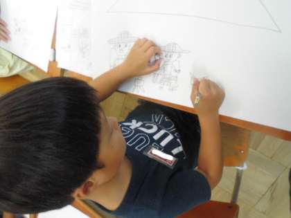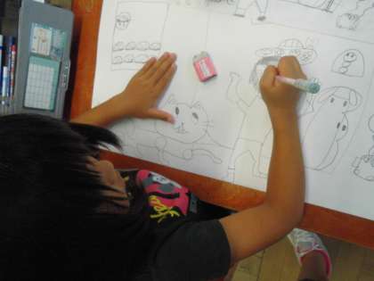 お話を聞いて,自分の描きたい場面を描いています。画面いっぱいにのびのびと描いて楽しそうですね。