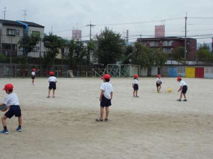 いろいろなボール遊びを知り,友達の受けやすいボールを投げたり,落とさずに受けたりすることを楽しみました。