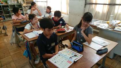 9月11日 5年 外国語「She can run fast.He can jump high.」