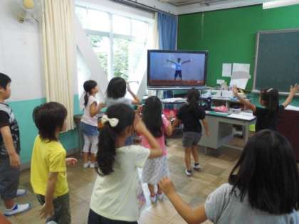 動画を見ながら全校ダンスの練習をしました。