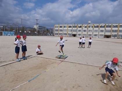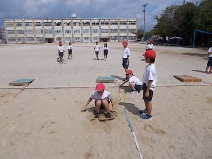 今日は,ねらい1で5mの助走で練習しました。両足着地も上手くなってきました。