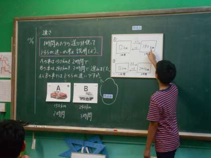 速さの求め方について,図を使って説明したり考えたりしました。