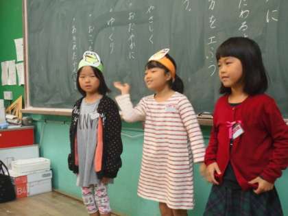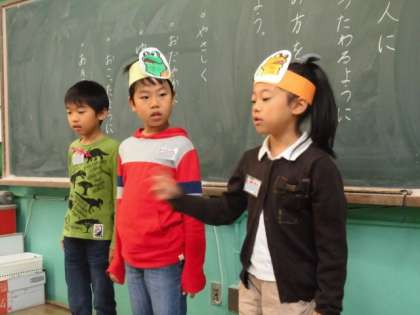 アーノルド・ローベルさんの「がまくんとかえるくん」のシリーズのお話の中から,音読劇にしたいお話を選んで,友だちと一緒に劇をしました。どのグループも役になりきって楽しくできました。