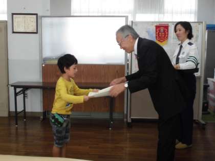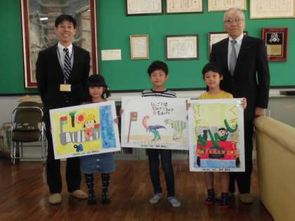 1年生らしいかわいさの中にも,「交通安全」というテーマがしっかりと伝わってくる作品ですね。出品者全員に,参加賞もいただきました!