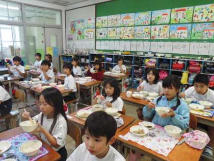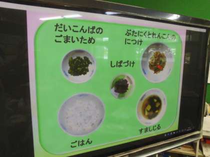 今日は10月の和み献立の日でした。毎回動画を見ながら食べ物について学んでいます。よく味わって美味しくいただきました。ごちそうさまでした。