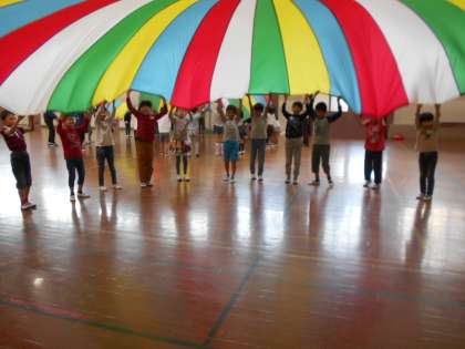 一緒にバルーンで遊んだり歌に合わせて体を動かしたりしました。