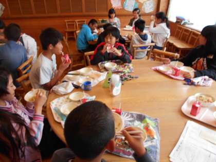 食の学習の後はランチルームで給食をいただきました。今日のメニューは五目あんかけラーメンでした。みんなで楽しく食べることができました。心も体も温まりました。