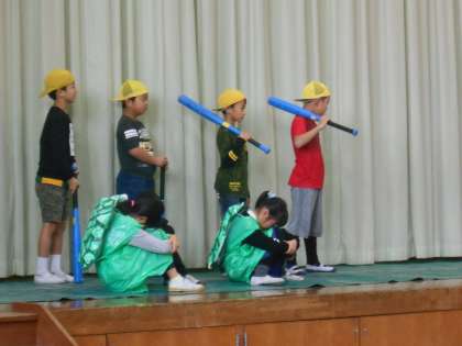 うらしまたろうが,竜宮城へ。いろいろな達人が3年生で学習している習字やリコーダーにダンス,京野菜や大きな数,遊びなどをグループでしっかり発表できました。物語の途中に歌った歌のピアノ伴奏も子どもたちが弾き,子どもたちがみんなで作り上げたとっても素敵な「うらしまたろう」〜川岡物語〜でした。