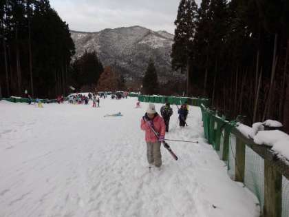中級コースの子どもたちは、しっかりはハの字を作って滑っています。