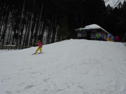 上級コースの子たちは、斜面に慣れてくるとスキーをうまくコントロールしながらスピードアップしていきました。