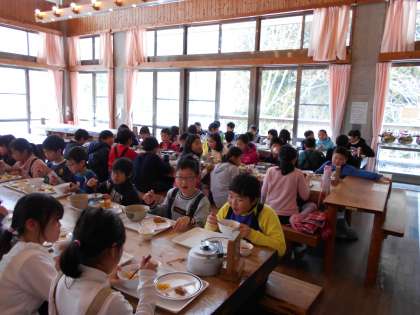 スキーでたくさん運動した後なので昼食がおいしかったです。