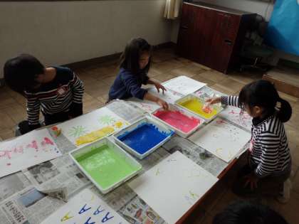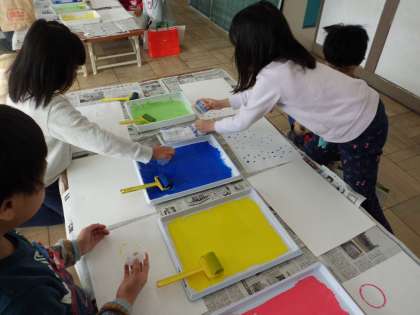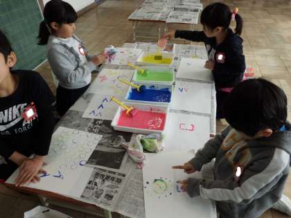1月11日 1年 図工 「えのぐをつけたかたちから」