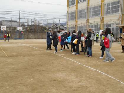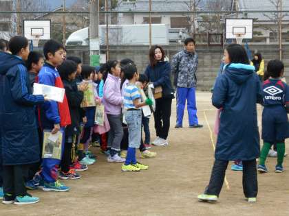 それぞれの学年・男女別のタイムの確認の後は,お楽しみの抽選です。当たった人は良かったですね!そして参加賞が全員にありました。