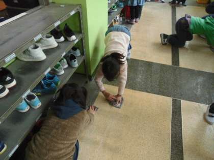 水が冷たかったですが,雑巾をギュッと絞って,隅々まで綺麗にふきました。みんなで頑張って,すっきり気持ちよくなりました。