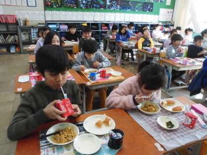 「焼きそば」が大人気で,喜んでいただきました。おかわりをしていただいて,とっても嬉しそうでした。美味しい給食をいつもありがとうございます。