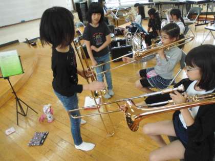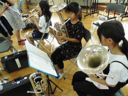 6年生は修学旅行中ですが,5年生と4年生で練習しました。今年度,1回目の活動です。今日が初めての人も,楽器を演奏してみて,音が出せました♪