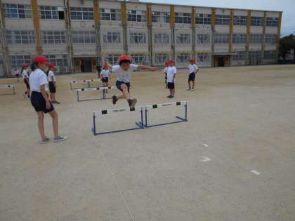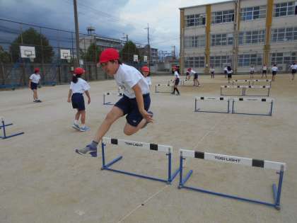 体育の学習でハードル走が始まりました。ハードルを低く跳びこすためにどうすればよいのかを考えながら頑張っています。まだまだ難しいですが,学習の終わりにはきれいに跳びこせるようになるとうれしいです。