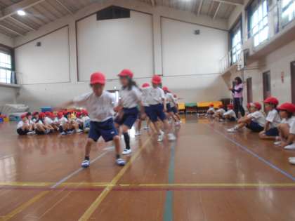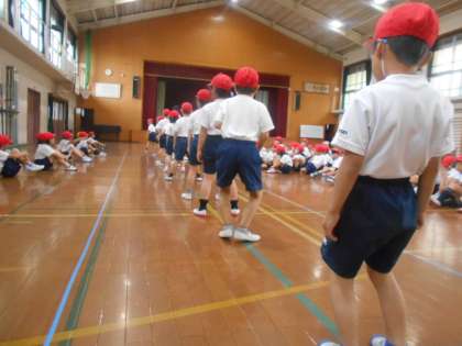 明日の新体力テストにむけて,反復横跳びの練習をしました。初めての種目なので最初はゆっくり跳んで練習をしました。だんだんリズミカルに跳べるようになりました。本番も頑張りましょう!