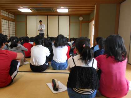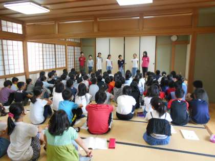 各ブースの代表者の子は,みんなの前であいさつを聞いてもらいました。