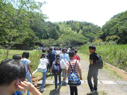 ナイトウォークの下見に行きました。夜の自然を体感する前に,昼間の様子をして観察しておこうとみんなでコースを回りました。