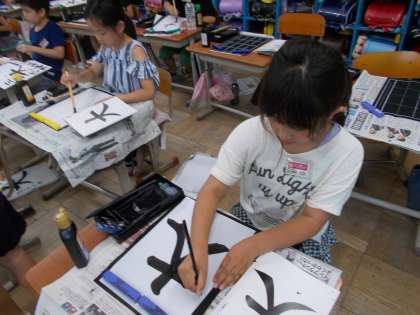 7月11日 3年 書写 「はらいの筆使い」