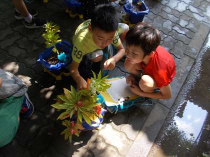今日は,成長したホウセンカとヒマワリの観察をしました。