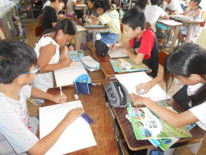 グループで協力して考えています。