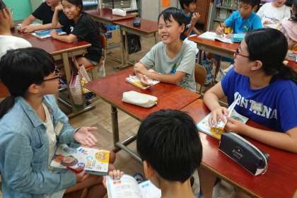 自分の町にある施設を紹介したり,ほしいと思う施設を紹介したりする学習をしています。今日は,図書館や遊園地,水族館などの英語表現に慣れるために,メモリーゲームで友達と言い合いました。