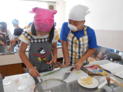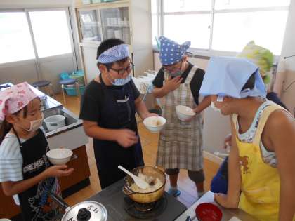 伝統的な日本の朝食であるごはんとみそ汁を作りました。栄養のバランスが考えられた日本の朝食にみんな感心していました。自分のお好みの具材を入れて家庭でも作ってみてほしいです。また,ガスで炊くごはんも初めて経験しました。とても上手にできました。