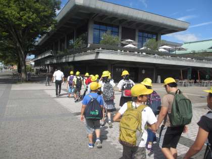 ロームシアターで行われたファミリーミュージカル「カモメに飛ぶことを教えた猫」を鑑賞しました。。演劇に込められたメッセージは何かを考えながら鑑賞しました。鑑賞後は,平安神宮前の広場でお弁当を食べて帰校しました。