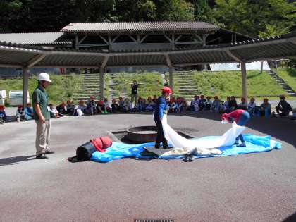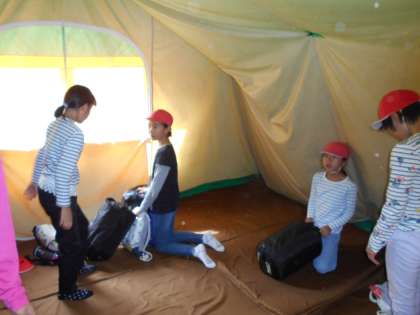 山の家の先生から,シーツやシュラフの出し方たたみ方を