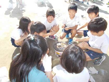 なかなか火がつかず,苦戦しているグループもありましたが,七輪で焼いて食べたお餅はとってもおいしかったようです。