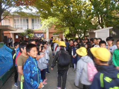 6年生が大文字駅伝の予選会に出場しました。5年生が川岡小学校を代表して6年生にエールを送りました。ラグビーワールドカップで話題となったビクトリーロードでお見送りをしました。
