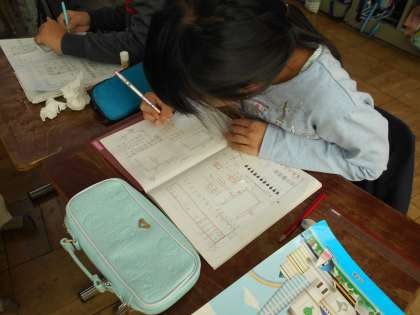 ノートに図をかいたり式をかいたりして,