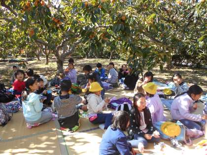 みんなでお弁当を食べた後,一人一つ柿をとらせていただきました。
