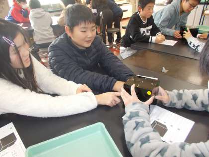 センサーは何に反応しているのか,音を出したり光を当てたりして調べました。