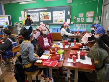 また,今日は教育委員会から,給食担当の先生が来られ,