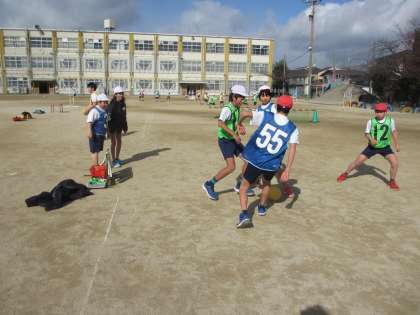 リーグ戦でいろいろなチームと試合をしながら,ルールに慣れたり自分のチームの特徴を考えたりしました。