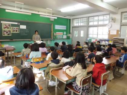 今日は,栄養教諭の田上先生と一緒に牛乳の秘密を見つける学習をしました。毎日給食で飲んでいる牛乳にはたくさんカルシウムがふくまれていることがわかりました。巻物になったカルシウムがどんどん伸びていき,びっくりしました。