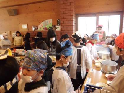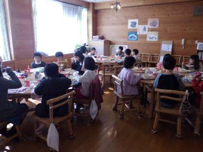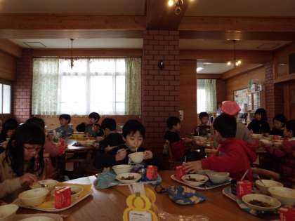 牛乳の秘密を見つけた後は,ランチルームで給食を食べました。教室とは違ってみんなの顔を見ながら食べられるので楽しく食べることができました。