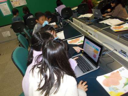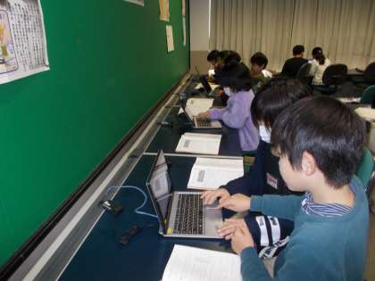今日は,コンピュータールームで実際にローマ字打ちの練習をしました。