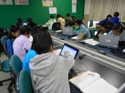 はじめてコンピュータ室に行き,ローマ字入力の仕方を学習しました。