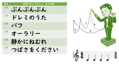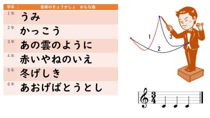 さて,音楽にはさまざまな「拍子」がありますが,よくあるのが4拍子,3拍子です。教科書にも,4拍子の曲,3拍子の曲がたくさんあります。大きな声で歌うと,近所の方がびっくりされるかもしれませんが,知っている曲があったら,拍をからだで感じながら口ずさんでみると気持ちいいですよ。