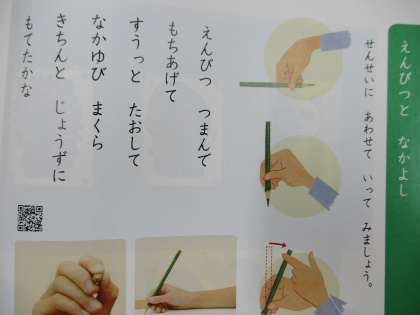 こくごのきょうかしょには,ただしいえんぴつのもちかたを しょうかいしています。