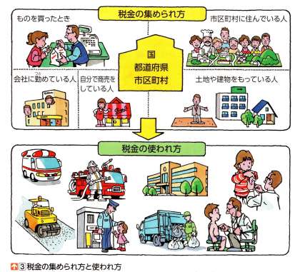 今日の学習には,税金の働きと日本国憲法の三原則が関わっています。
