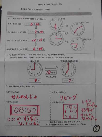 1日の中で,なんかいか おうちの とけいを 見て,じこくを よむれんしゅうを しましょう。