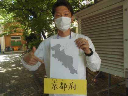 カメレオンのような形に見えるのは,京都府でした。宇治茶や湯豆腐が有名です。みんなの川岡小学校は,京都府京都市西京区にありますね。