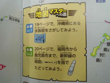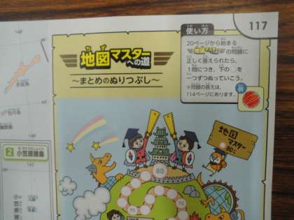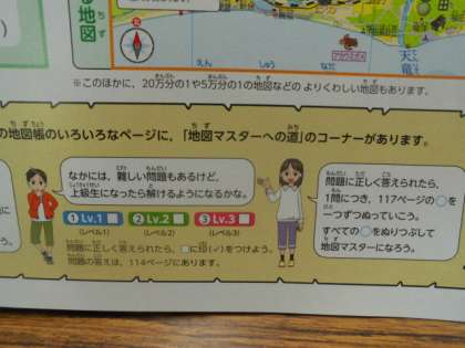4年生のみなさん,地図帳を開いて見ていますか?地図帳のいろいろなページに「地図マスターへの道」のコーナーがあります。