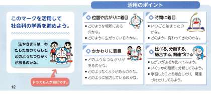 ドラえもん達の質問を見出しの一つとして使い,その答えを考えたり,探したりしてまとめていくのもいいと思います。
